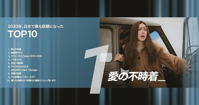 사회 저명인사들을 심사위원으로 정해 그 해를 상징하는 말이나 흐름(트렌드)을 총괄해 올해의 유행어 금상과 톱10을 발표하는데요. 우리와 그다지 관계없는 남의 나라 연례행사지만 2020년 12월 1일 발표된 톱10에는 한국인의 눈길을 끄는 단어가 하나 있었어요. 바로 넷플릭스를 통해 일본에 방영된 한국 드라마 <사랑의 불시착>입니다. 한국 드라마가 유행어 대상의 톱10에 든 건 2004년 드라마 <겨울연가> 이후로 처음 있는 일이에요. 다시 말하자면 <사랑의 불시착>이 2020년 일본 사회에 끼친 영향이 <겨울연가> 급이었다는 이야기다. 이 소식을 들은 많은 일본인도 “맞아, 이게 빠지면 잘못된 거지”라는 반응이었어요.