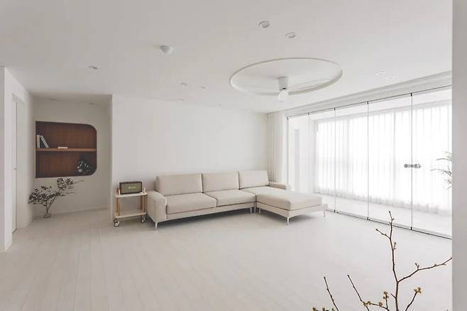 밝고 아늑한 분위기의 거실. 라인을 최대한 다듬어 미니멀한 감성을 주었어요.