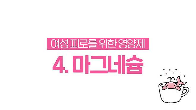 지난번 마그네슘에 대해 자세히 다룬 영상을 보신 분들은 아시겠지만 신경과 근육의 긴장을 풀어주는 이완 미네랄이기 때문에 생리전증후군 뿐만아니라 생리통이 심한 여성분들에게도 추천하는 영양소죠.