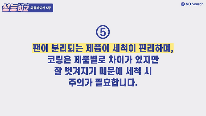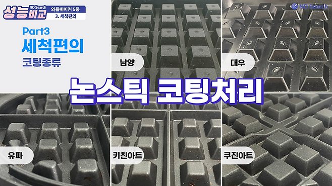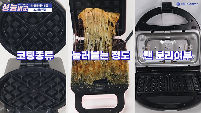 세척 편의는 코팅의 종류, 눌러붙는 정도, 팬 분리여부에