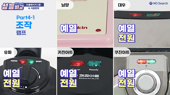 남양은 전원램프 없이 예열램프만 있으며, 이 외의 4개 제품은 전원램프와 예열램프가 별도로 있었습니다.