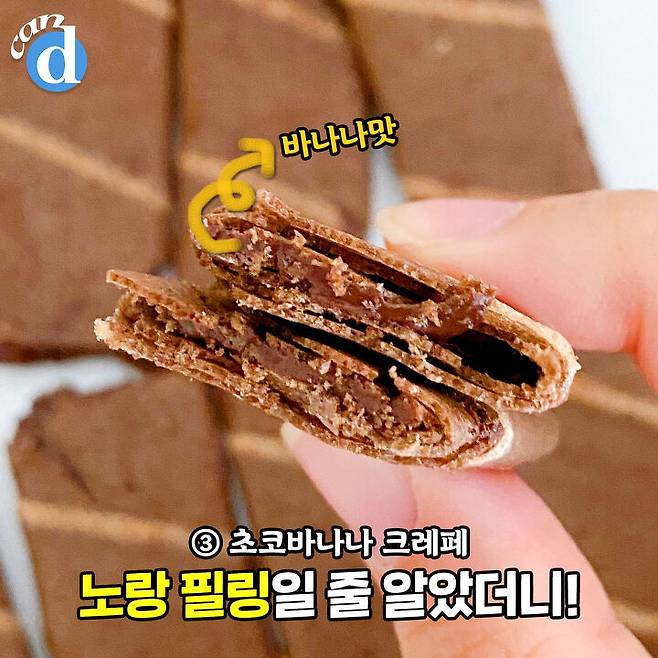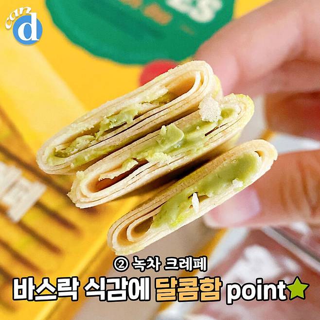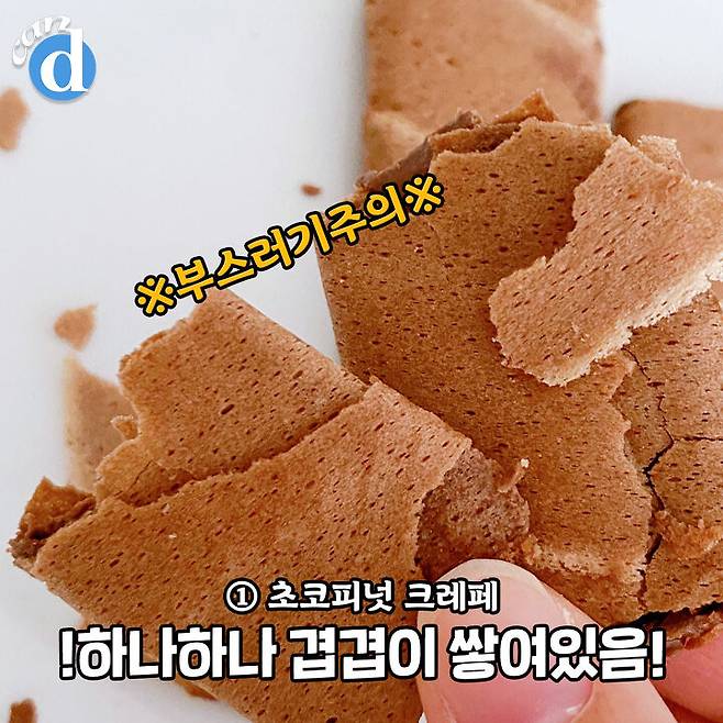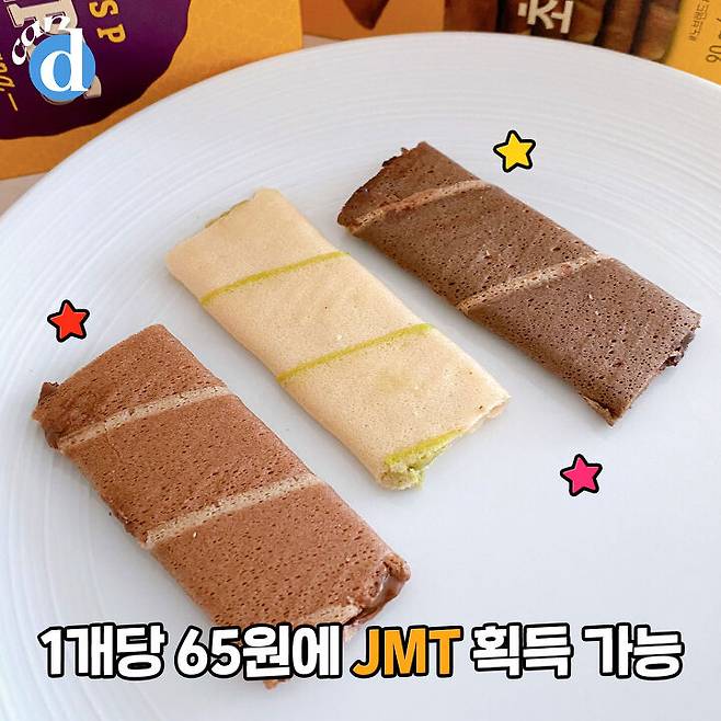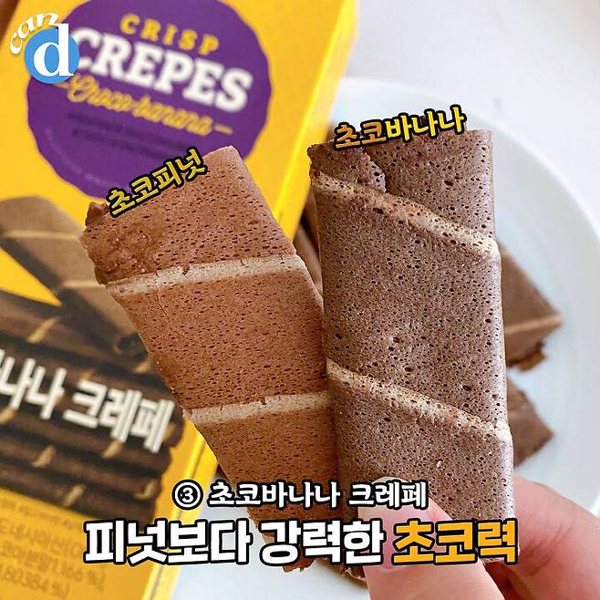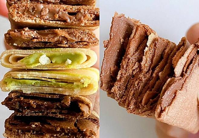 크레페 자체보다는 필링맛이 돋보이는 과자.