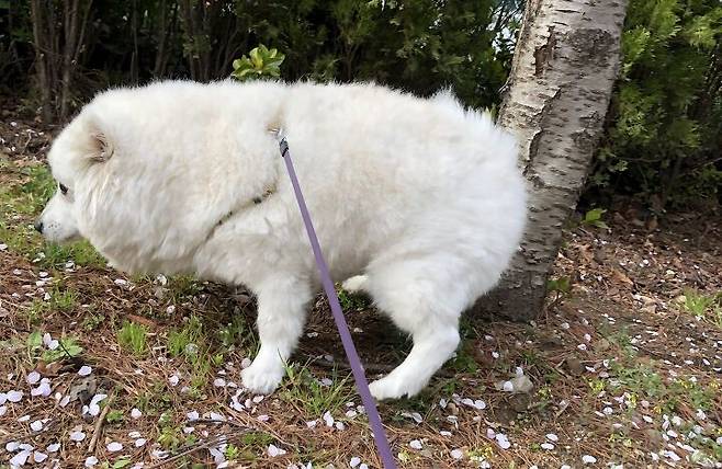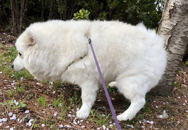 가끔 강아지가 풀을 많이 먹어, 일시적으로 초록빛이 돌 수도 있어요.