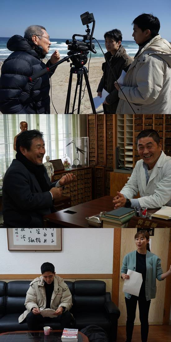 공개된 4컷의 스틸은 한의원과 동해바다 등 영화의 배경이 되는 다양한 장소에서 촬영에 집중하는 홍상수 감독의 모습이 담겼다.