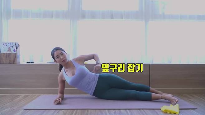 팔꿈치와 무릎이 만나면서 구부릴 때 옆구리를 강하게 조여주고 복부 납작하게 밀어 넣어 주세요. 정말 큰 자극이 오는 엄청 좋은 동작입니다.