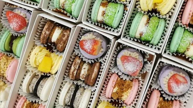 마카롱은 작고 동그란 모양의 머랭 크러스트 사이에 잼, 가나슈, 버터크림 등의 필링을 채워 만든 프랑스 쿠키다. 마카롱의 높은 인기로 인해 ‘뚱카롱’이라는 한국식 마카롱까지 등장하게 된 것이다. 뚱카롱은 꼬끄 사이에 들어가는 필링을 아주 두껍게 쌓아 크기를 키운 뚱뚱한 마카롱이다. 딸기나 바나나 오레오 쿠키, 찹쌀떡까지 통째로 들어갈 정도다. 한 입 베어 물면 달달한 맛이 입안 가득 채워주는 뚱카롱은 이제 한국을 대표하는 간식이 됐다.