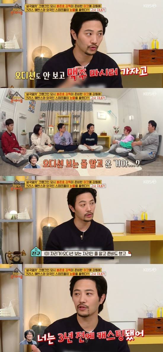 특히 진구는 "봉준호 감독님을 처음 뵈러 갔는데 오디션도 안 보시고 낮에 맥주를 마시러 가자고 하시더라. 오디션을 안 봤고 이걸 너무 하고 싶으니 '내가 술에 취하거나 흔들리면 안 된다'라고 생각했다. 테스트라고 생각했다. 낮에 맥주 40병 정도 마셨다"라며 과거 기억을 떠올렸다.