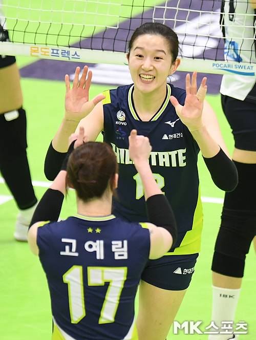 현대건설 이다현이 득점에 기뻐하고 있다. jh1000@maekyung.com
