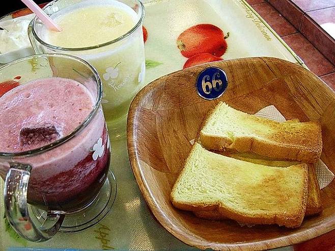 당시엔 엄마가 해주는 것으로만 여기던 생과일주스를 먹을 수 있다는 것이 매력적이었고 무한리필이 되는 토스트가 인상적이었습니다.