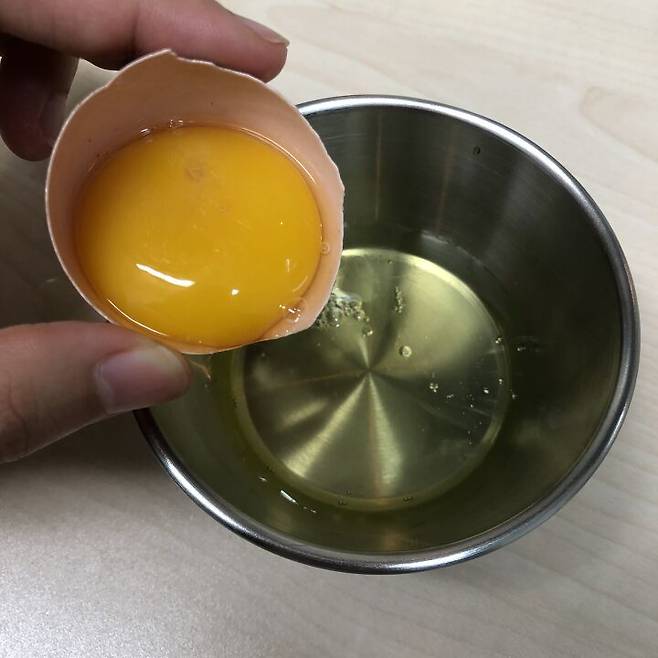우리는 노른자를 사용할 거기에 흰자는 따로 걸러줌