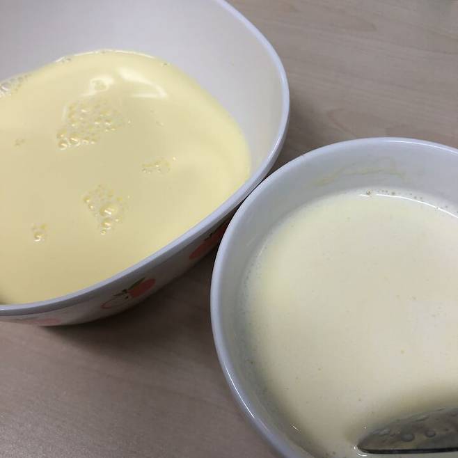 급하게 젓다가 거품 생긴 달걀 우유,,