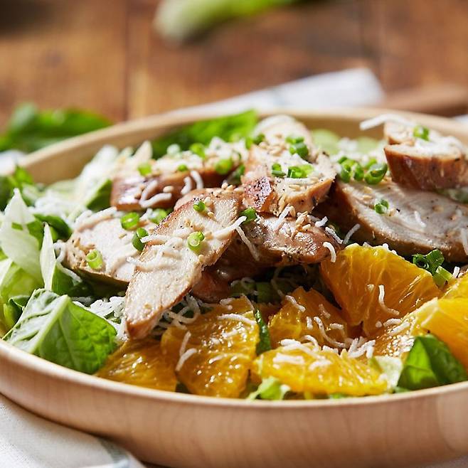 셀레늄과 비타민E를 함께 충분히 섭취하면 항산화 효과에 더해 항체 생성률을 20~30배까지 높일 수 있는데요. 비타민E는 호두와 땅콩, 아몬드와 같은 견과류에 풍부합니다. 데리야키에 반나절 재워 200도로 구운 닭가슴살, 직접 구워낸 미국 캘리포니아산 아몬드를 곁들인 프레시코드의 닭가슴살 아몬드 샐러드를 먹으면 두 영양소를 충족할 수 있습니다.