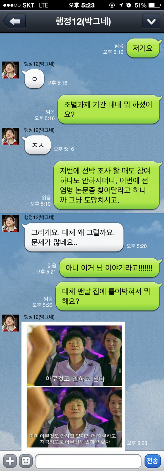연락 한 번 하려면 긴 시간을 기다려야 한다. ‘자느라 못 봤어요’라고 말 하면 그나마 양반이다. 뭐했냐는 질문에 사생활이라고, 묻지 말라고 대답하면 ‘대략 난감’하다 다른 사람들이 발등에 불 떨어진 듯 과제에 온 힘을 쏟고 있을 시간에 홀로 ‘프라이버시’를 즐기기 위해 전화기를 꺼놓는 유형. 민폐 of 민폐다.