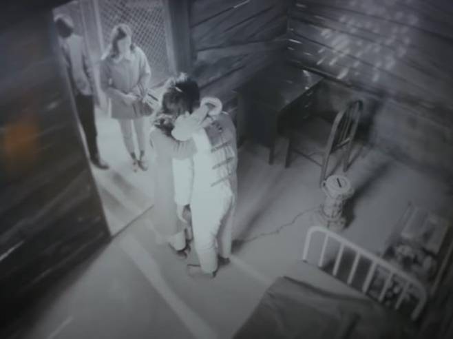 순이가 잠시 병원에 갔다 오기 위해 철수에게 인사를 하는 장면. 이때 철수가 나오려 하자 이를 제지하는 요원들과 힘싸움을 벌인다. 이에 순이가