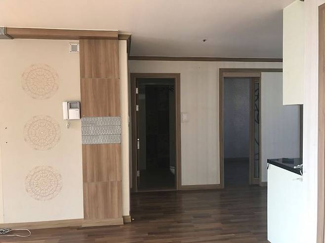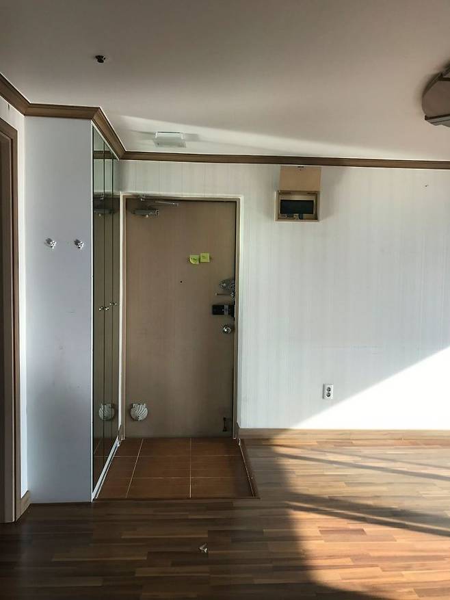 여느 오래 된 아파트의 20평대 구조가 대부분 그렇듯이 복도가 길지 않아서 중문 대신 파티션을 설치해서 공간분리만 했어요. 짧은 복도와 좁은 현관에 중문을 설치하면 더 답답해 보일 것 같다는 생각이 들었고, 계단식이라서 소음이나 외풍에 대한 걱정이 적었거든요.