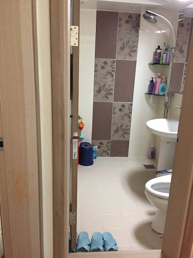 리모델링 전의 타일은 좁은 화장실을 더 좁아보이게 해서 타일을 바꾸고 나니 이제야 좀 가정집 화장실 같더라구요.