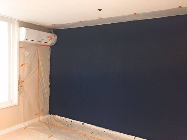 전체적으로 베이지와 화이트 컬러를 이용해 밝게 꾸민 거실과는 다르게 침실은 다크 네이비를 사용해 무겁고 조금 더 클래식한 느낌을 강조했어요.