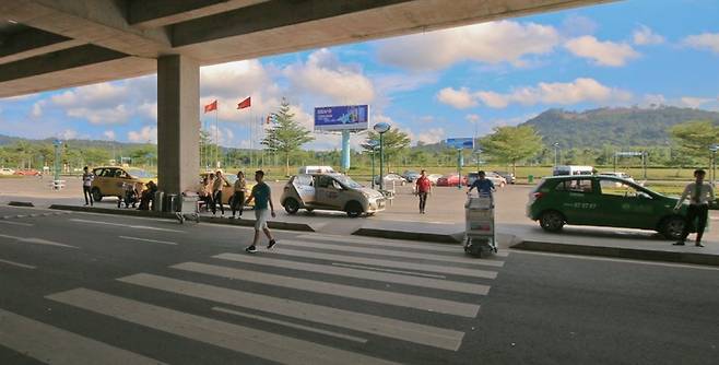 입국장을 나서면 여러 택시 회사의 택시들이 일렬로 대기하고 있어요. 즈엉동까지는 약 15~20분 소요되며, 통행료 포함 약 20만đ.