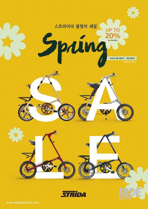 ‘세상에서 제일 아름다운 삼각형’ 스트라이다가 입춘을 맞아 봄맞이 세일을 실시합니다. 따뜻한 봄 커플 라이딩용 자전거, 출퇴근이나 등하교용 자전거로 손색없는 근거리 이동수단을 찾으신다면 스트라이다만한 모델이 또 없죠! 산바다스포츠에 의하면 이번 세일이 ‘스트라이다 브랜드 최초의 세일이자 역대 최저가로 구입할 수 있는 기회’라고 하네요.