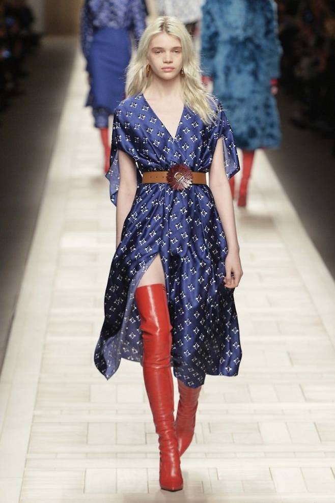 여성들은 대부분 펜디 액세서리에 열광한다. 이번 시즌 칼 라거펠트와 실비아 벤추리니는 웨어러블한 아우터웨어와 함께 구매욕을 자극하는 가방을 선보이며 관객들의 찬사를 받았다. 특히 슬릿 새틴 피트 앤 플레어 원피스는 쿠이사르 부츠와 매치해 완벽한 스타일을 창조했다. 아메리카나 컬러 팔레트 역시 돋보였다.