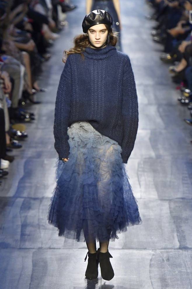 밀리터리 스타일의 의상은 세련된 느낌을 연출했지만 소비자들이 입기에 부담이 없었으며 특히 매력적인 블루 톤이 관객들을 매료시켰다. 짙은 청색의 옴브레 스커트와 매치한 네이비 니트 스웨터가 가장 주목을 끌었다.