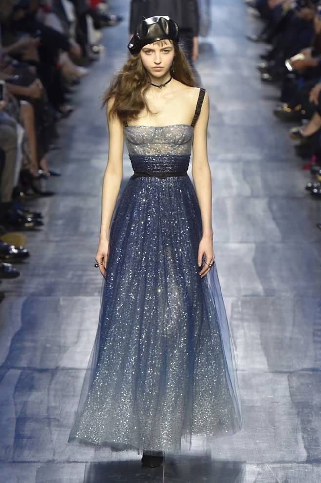 블루 색조와 베레모는 압권이었으며 빛나는 넘버 드레스는 신데렐라를 꿈꾸는 여성들의 로망을 충족시키기에 부족함이 없어 보였다. 아마 영화 '미녀와 야수'의 벨 드레스와 맞짱을 뜰 수 있을 정도로 매력적이었다.