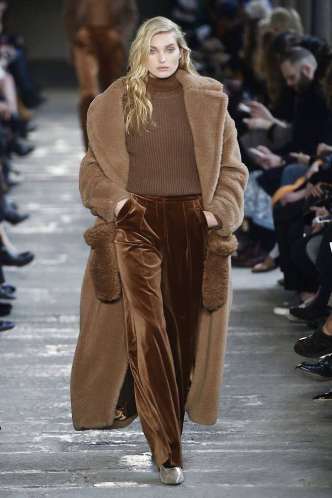 이번 시즌 막스마라 컬렉션은 이지한 모노크롬 룩으로 가득한 스타일을 제시했다. 아름답고 실용적인 웨어러블한 코트 등이 주목을 끌었으며 특히 모델 엘사 호스크가 입은 커다한 모피 포켓이 달린 카멜 코트가 인상적이었다.