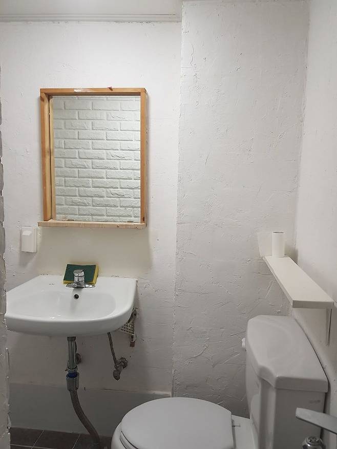 욕실 벽도 핸디코트라니~ 처음에는 황당했지만 이제 보니 카페 같은 느낌이 들어서 나름 느낌 있네요!