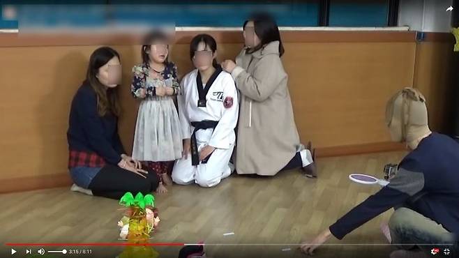 아빠는 강도로 분장을 했습니다. 아빠는 엄마를 잡아가겠다며 전기 모기채로 아이에게 겁을 줬습니다. 이어 노래 부르고 춤을 추라는 엄포를 놓았고 아이는 울며 그 지시에 따랐습니다. 우는 아이 모습을 ‘눈물의 몰카 성공’이란 자막과 함께 내보냈습니다.