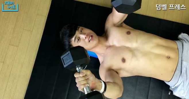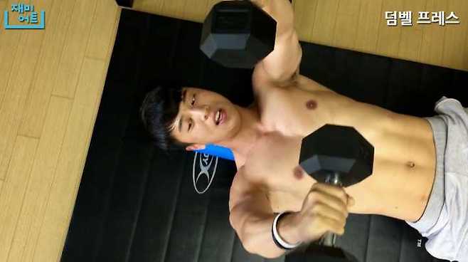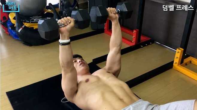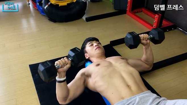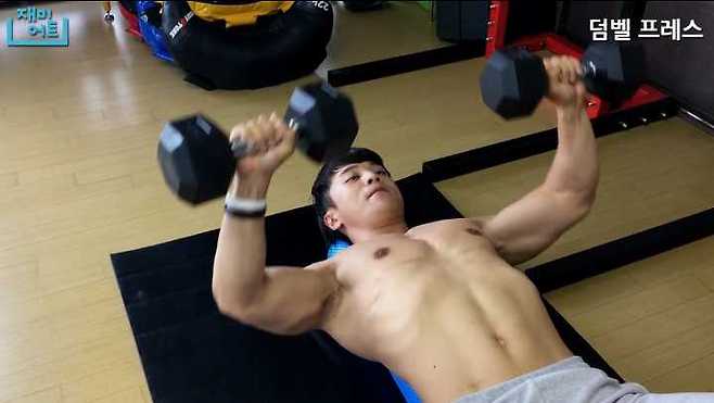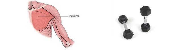 왼쪽은 가슴근육, 오른쪽은 덤벨