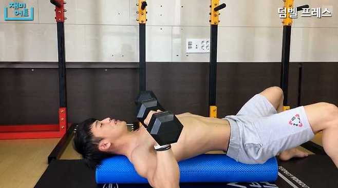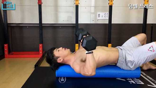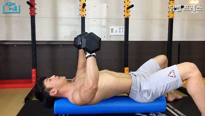 폼롤러 위에서 덤벨 프레스를 해주게 되면