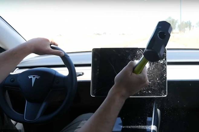 6분 분량 영상에는 주행 중 무거운 망치를 이용해 모델 3 터치 스크린을 파괴하는 장면이 담겼다. 처음에는 가볍게 치기 시작하다 점차 강도를 더하며 횟수를 거듭했다. 그러자 어느 순간 터치 스크린에 균열이 시작되고 결국 블랙아웃되며 기능을 완전히 상실한다. 하지만 여전히 모델 3는 정상 주행되고 차 안의 모든 것이 작동되는 모습이 담겼다. 또 그는 터치 스크린이 완전히 제거된 상황에서도 주차와 후진 등이 가능하고 재시동 또한 가능하다고 설명했다.
