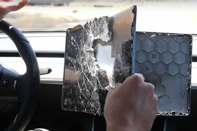 최근 '테크랙스'라는 이름의 한 유튜버는 금이 간 스마트폰을 화면이 완전히 깨지기 직전까지 여전히 사용하는 경험을 바탕으로 테슬라 모델 3 터치 스크린 역시 동일하게 작동할 수 있는지 실험에 도전했다.