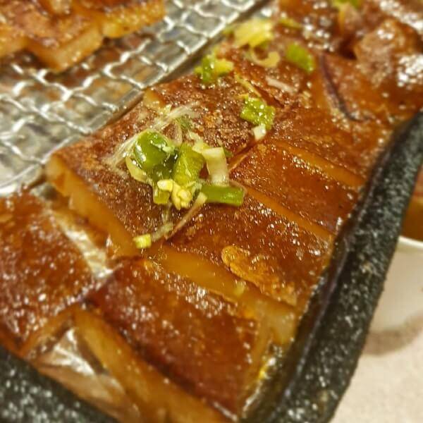냉동육이 아닌 제주산 암퇘지 생고기를 급속냉동시켜 썰어내는 삼겹살집으로 제주산 통껍데기를 맛볼 수 있다. 날계란을 풀어먹는 특제 소스와 멜젓 등 다양한 양념을 곁들여 먹는 삼겹살과 직원이 남다른 스킬로 정성껏 구워내는 두툼한 벌집 껍데기 모두 인기다. 먹음직스럽게 익은 껍데기에는 특제소스를 얹어 마무리한다. 느끼하지 않고 쫄깃한 맛이 살아있어 그냥 먹어도 맛있지만 콩가루를 찍어 먹어도 고소함이 두 배가 된다.