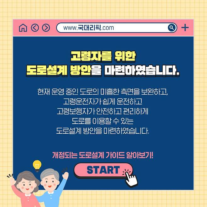 한편, 「고령자를 위한 도로설계 가이드라인(지침)」은 국토교통부 누리집(www.molit.go.kr)에서 확인할 수 있습니다.