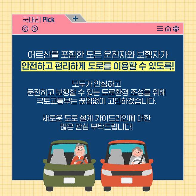 고령운전자가 쉽게 운전하고, 고령보행자가 안전하고 편리하게 도로를 이용할 수 있는 도로설계 방안이 마련됩니다.