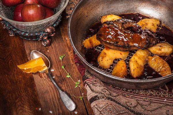 사과와 돼지고기는 음식 궁합이 아주 좋다. 돼지고기를 먹을 때 사과를 곁들여 먹으면 소화를 돕고, 새콤달콤하니 새로운 맛을 느낄 수 있다. 원하는 부위의 돼지고기(목살 추천)를 적당한 크기로 썬 뒤 소금, 후춧가루를 뿌려 밑간한다. 잡냄새를 제거하기 위해 소주 또는 약간의 청주를 붓는다. 사과는 껍질과 씨를 제거하고 먹기 좋은 크기로 썰어 준비한다. 양념장은 간장 5큰술, 맛술 5큰술, 식초 5큰술, 매실액 2큰술, 설탕 1큰술을 섞어 준비한다. 달군 팬에 돼지고기를 앞뒤로 노릇하게 굽는다. 사과를 넣고 볶다가 준비한 양념을 넣고 끓인다. 한소끔 끓으면 중불에 조리듯이 익힌다.
