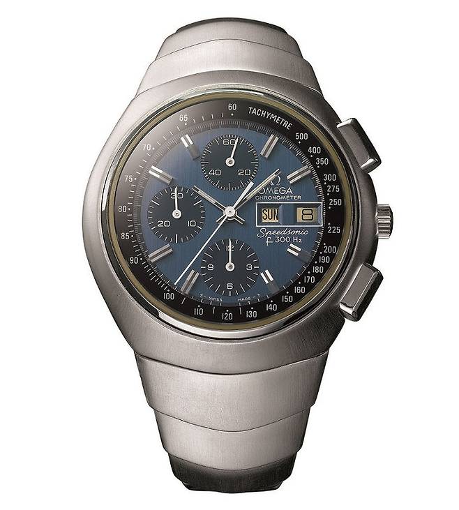 - 1973년 제작된 스피드소닉(Speedsonic). 스피드마스터 라인 최초로 전자식 쿼츠 무브먼트로 구동하는 시계로, 갑각류의 꼬리 모양을 닮은 독특한 브레이슬릿 형태 덕분에 '랍스터'라는 애칭을 얻음.