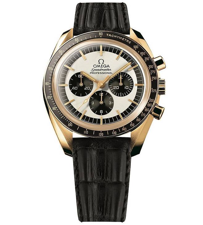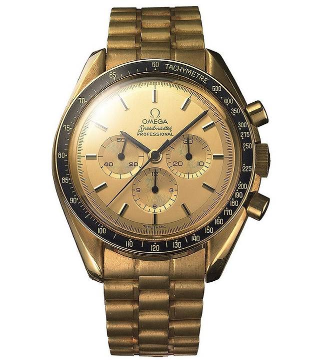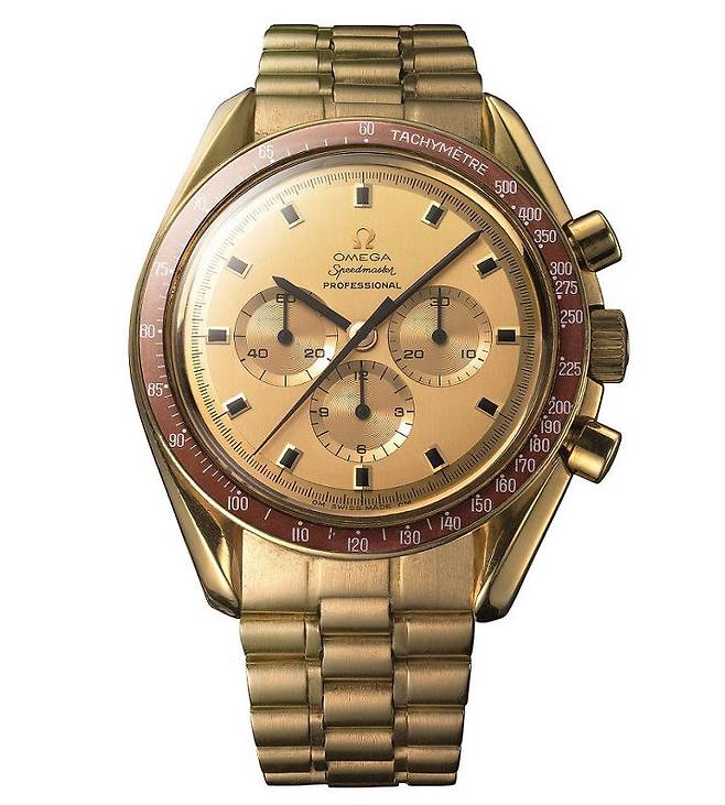 - 1969년 제작된 첫 18K 골드 스피드마스터 스페셜 기념 에디션. 이중 일부는 당시 휴스턴서 열린 갈라 디너에 참석한 19명의 우주비행사들에게 선물됨.