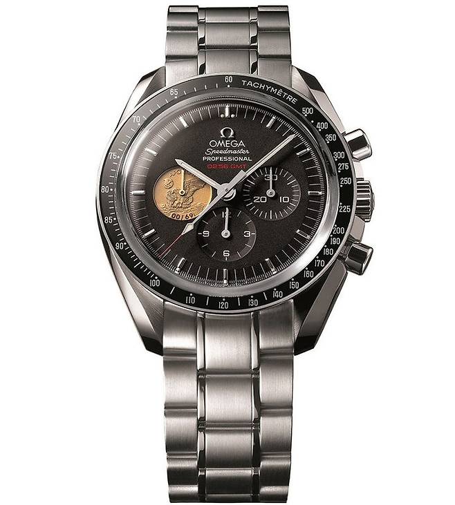 - 2009년 제작된 스피드마스터 아폴로 11 40주년 기념 에디션. 플래티넘 케이스로만 69피스 한정 제작되었으며, 스몰 세컨드 다이얼에 옐로우 골드 메달리온을 추가해 특별함을 더함.