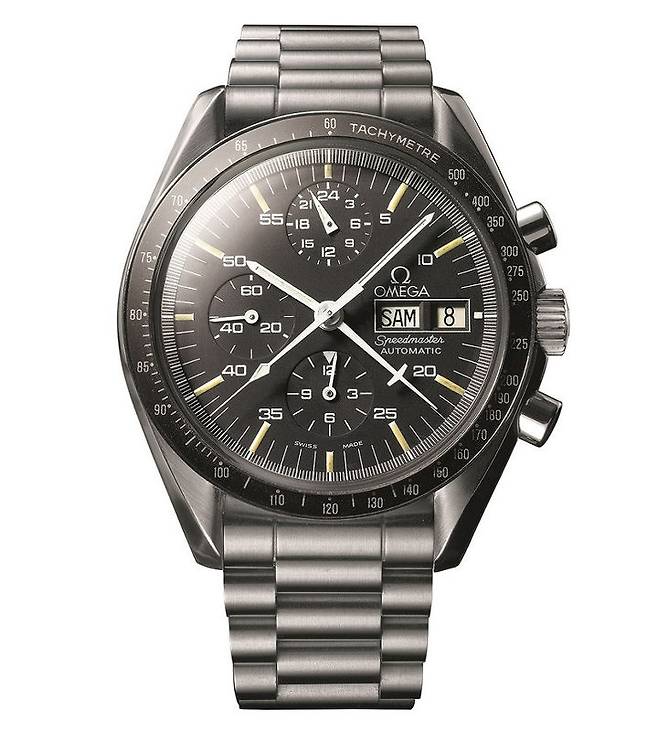 - 1987년 제작된 스피드마스터 오토매틱. 클래식 문워치 케이스에 처음으로 오토매틱 무브먼트를 탑재한 희소성 있는 모델