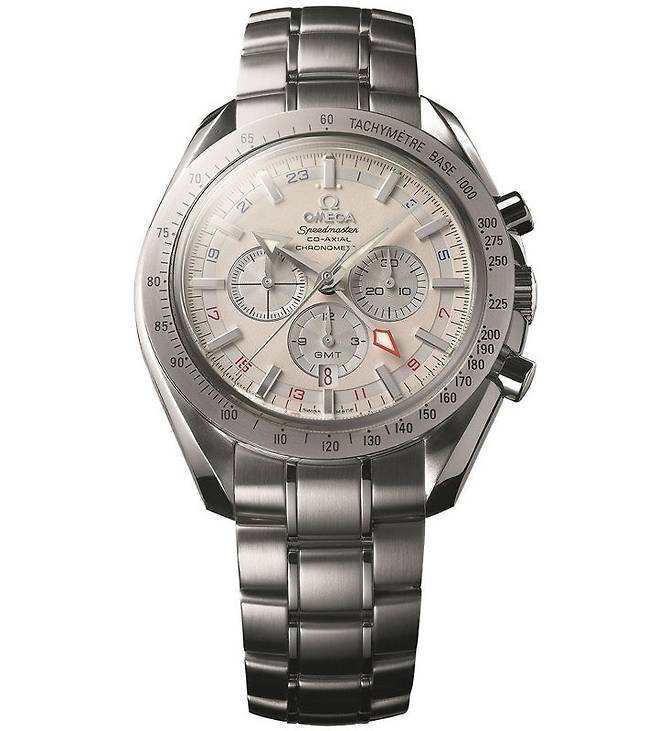 - 2005년 제작된 첫 스피드마스터 코-액시얼(Co-Axial) GMT 모델. 브랜드에 광범위하게 사용되기 시작한 혁신적인 코-액시얼 이스케이프먼트를 처음으로 도입한 스피드마스터 모델.