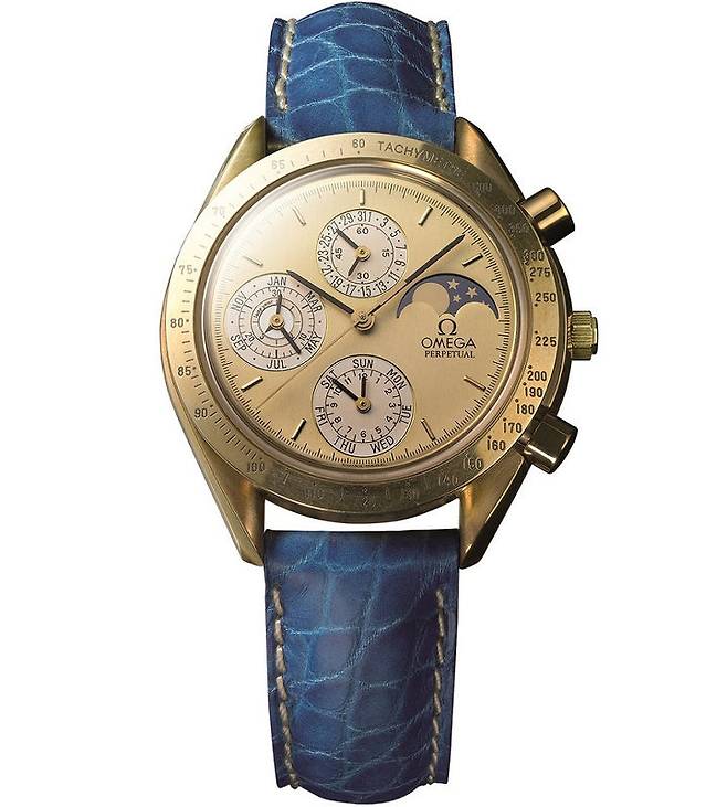 - 1991년 제작된 첫 스피드마스터 퍼페추얼 캘린더 모델 (50피스 한정). 당시 스위스 건국 700주년을 기념하기 위해 제작되었지만 일본 시장에서만 출시됨.