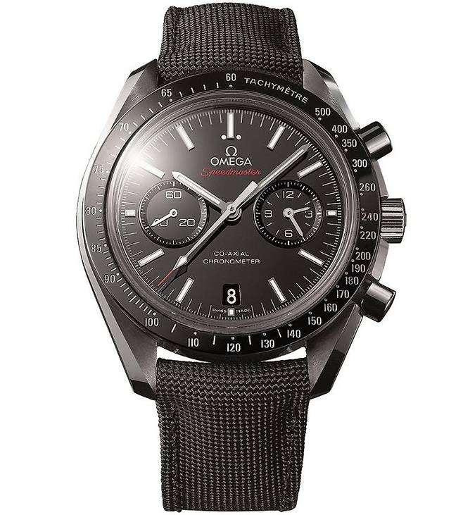 - 2013년 발표한 스피드마스터 '다크 사이드 오브 더 문(Dark Side of the Moon)'. 스피드마스터 라인 최초로 풀 세라믹 케이스로 제작해 화제를 모음.