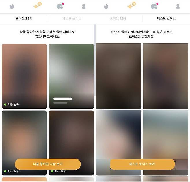 이 뿐만 아니라 앱을 사용하는 내내 결제를 하고 싶은 욕구를 끊임없이 유도한다. ‘나를 좋아하는 이성 보기’라던가 ‘베스트 초이스’와 같이 심리적인 욕구를 자극하여 결국 구매를 하게 만들곤 한다.