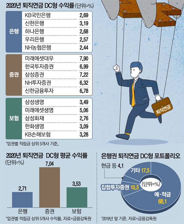 - [단독] 퇴직연금, 증권사 7% 수익 올릴 때 은행은 2.7% 그쳤다