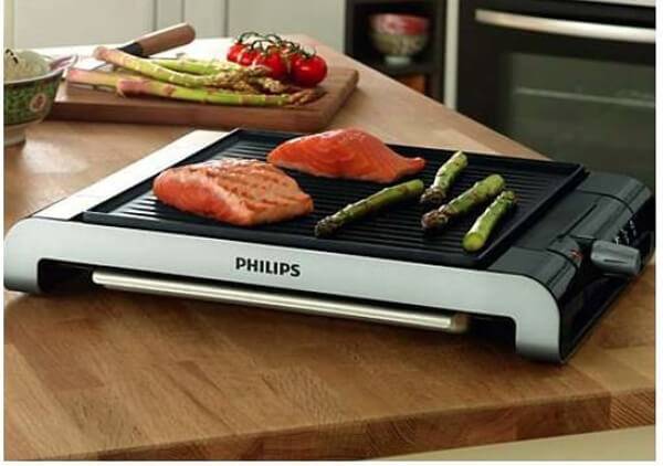 필립스 그릴 HD4417 냄새와 연기를 완화시키는 필립스만의 설계로 편리하게 사용할 수 있는 테이블 그릴이다. 필립스의 기술력으로 매우 빠르게 열판이 뜨거워져 재료의 수분과 양분이 달아나지 않도록 하며, 냉동된 음식을 올려놔도 금방 익힐 수 있다. 6mm에 해당하는 두꺼운 그릴 열판을 사용하기 때문에 표준 그릴보다 그 열기가 오래도록 유지된다. 음식 재료가 눌어붙지 않은 논스틱 그릴 열판이며 열선과 열판이 합쳐진 일체형 그릴판으로 세척이 쉽고 사용이 편리하다. 특히 식기세척기를 많이 사용하는 유럽의 영향을 받아서인지 부품을 식기세척기로 세척할 수 있다.