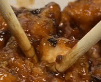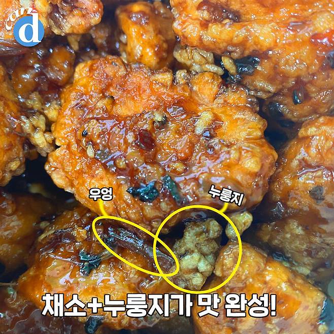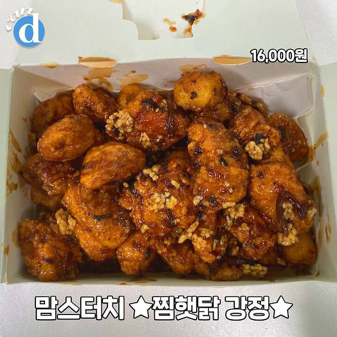 이 메뉴의 이름은 '찜햇닭 강정' 이에요.