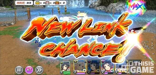 비전인법은 화면 하단에 표시되는 캐릭터들의 아이콘을 클릭하는 방식으로 사용할 수 있으며, 원작에도 있었던 각 캐릭터들의 필살기를 화려한 연출로 감상할 수 있습니다. 속성 등 여러 상황에 따라 다양한 효과와 강력한 대미지를 주기 때문에 적절하게 사용하는 것이 무엇보다 중요한데요. 그리고 ‘뉴링크 찬스’란 바로 이런 비전 인법을 ‘인연이 있는’ 캐릭터들 순서대로 사용하면, 전투 종료시 추가 보상을 주는 시스템을 말합니다. 그렇기 때문에 단순하게 화면을 연타하는 것 보다는 조금 더 생각을 하면서 전투를 치르는 쪽이 높은 보상을 받는 데 유리합니다.