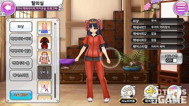 그리고 무엇보다 이 게임에서는 캐릭터 뽑기 및 이벤트 던전 클리어 보수, 캐릭터 육성(행운 수치 육성) 등을 통해 캐릭터와 함께 ‘의상’을 획득할 수 있습니다. 다양한 의상을 모아서 캐릭터들을 꾸며주고, 꾸며준 캐릭터와 여러가지 형태로 ‘커뮤니케이션’ 할 수 있는 코너가 잔뜩 준비되어 있어서 미소녀 게임을 좋아하는 유저들이라면 즐겁게(?) 즐길 수 있습니다. 이 부분은 글로 길게 설명하는 것 보다는 아래 스크린샷 등을 직접 보시죠.